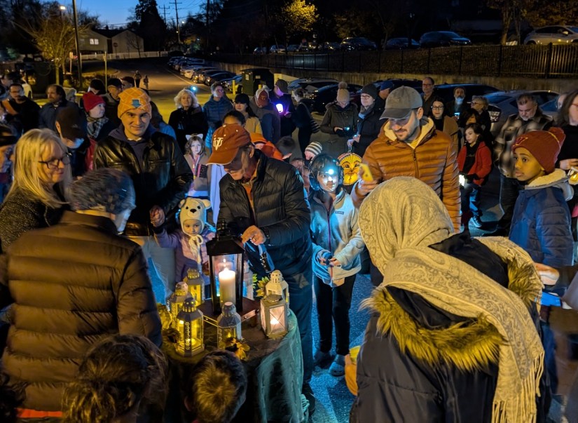 - All who donated refreshments and volunteered for event tasks, from setting up the reception space to serving as safety monitors at street crossings. Many thanks also to all who jumped in to assist with spur-of-the-moment tasks, e.g. helping get the Unity Lantern lit! Special thanks to Pat Tyson (Lyttonsville) for coordinating refreshments and Martha Berger (North Woodside) for ordering the pizza, Eva Santorini (Rosemary Hills) for coordinating volunteer sign ups, Joel Teitelbaum (Rosemary Hills) for coordinating safety volunteers, and Merrie Blocker (North Woodside) for assistance with safety aspects.