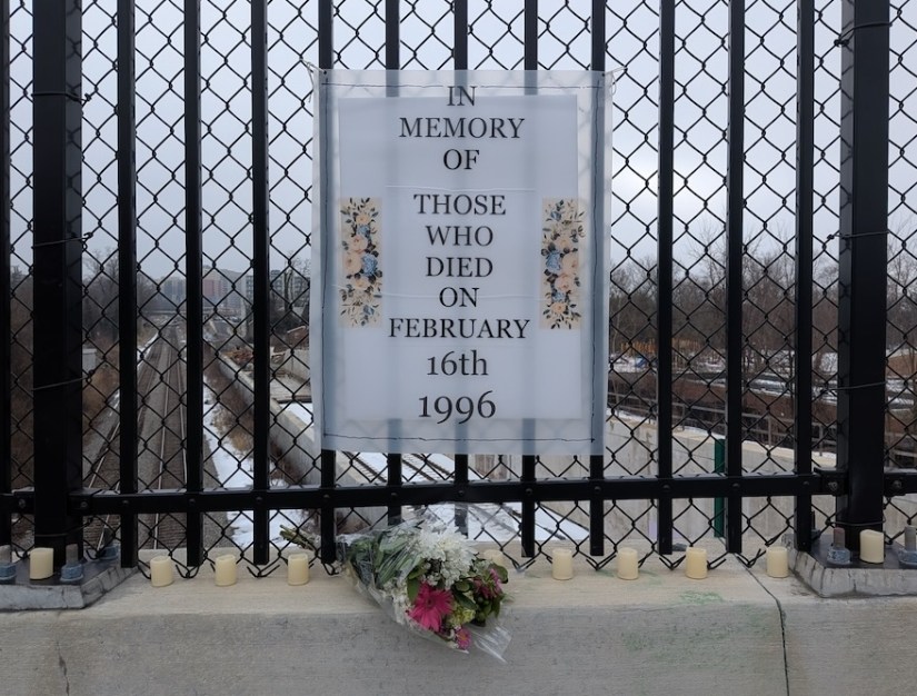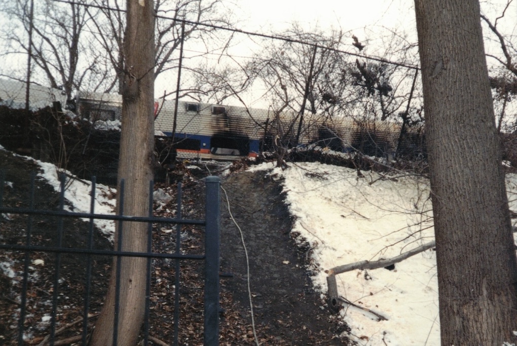 I remember the crash very well. We lived on Grace Church Road, near the (Talbot Avenue) bridge at the time. I happened to be home with my 3-year-old daughter due to the snowfall when the crash occurred and heard the crunching sound of the two trains hitting one another on the track behind the apartment buildings. Then I saw the smoke rising in the air. It was one of the worst feelings I have ever had. I couldn’t see the crash site from our backyard as it was screened by brushy areas and then by the apartments. Anyone who was home was aware something had happened, then heard the sirens and saw the smoke. Many rushed up to the Talbot Avenue Bridge but we couldn’t see much. I remember that it was getting dark and snow had fallen. I remember the aftermath with passengers climbing up the back and being shepherded into the apartment buildings for shelter. I remember the horror of hearing how the crash had happened and that it was preventable and how many victims it had claimed. It makes me very sad to remember that day and time. It was a terrible tragedy!